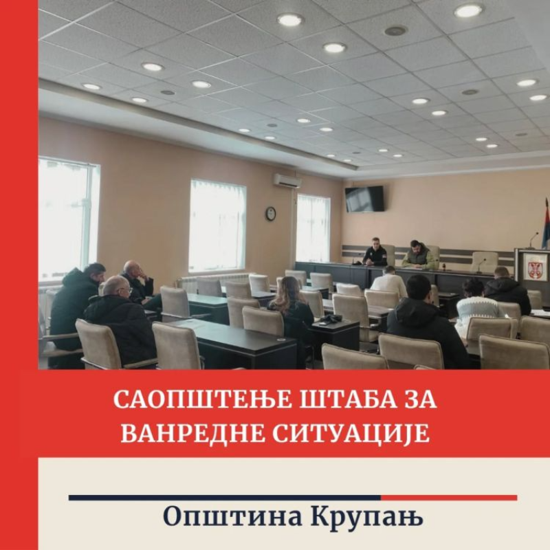 Održana je peta vanredna sednica Štaba za vanredne situacije opštine Krupanj, na kojoj je analizirana trenutna situacija na terenu i razmatrani problemi nastali usled nepovoljnih vremenskih prilika.