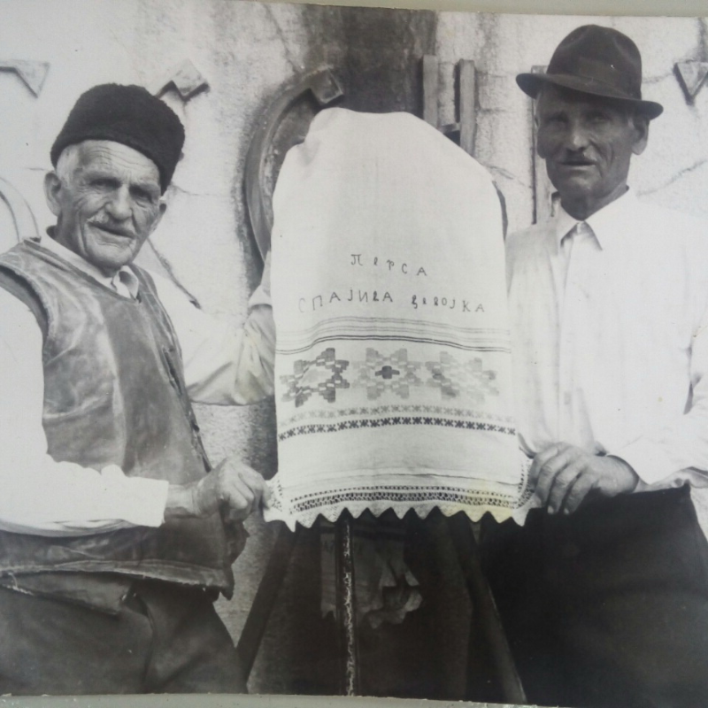 Pogledam po sobi,otišli ukućani,pobegli od borbi,vidi se da su žurno napustili kuću...U uglu sobe, sa moje desne strane drveni kovčeg,poveći...dopužem i otvorim ga...pun svega... ćilim na vrhu, ručno tkan na razboju, šaren i mirišljav...ispod peškiri,pa čarape...opet ćilim, stolnjaci, marame,košulje... Podignem i raširim jedan peškir...bljesnu napolju svetlica ...piše,Persa, Spajića đevojka,a sa druge strane,Dobro jutro dobri domaćine,srećan ti praznik...Ovo je ,moj Mileta, đevojački miraz...sprema srpske udavače,ništa drugo.I u mom Sedlaru sam viđao da ih devojke spremaju godinama i nose u mladoženjinu kuću kao dar .
